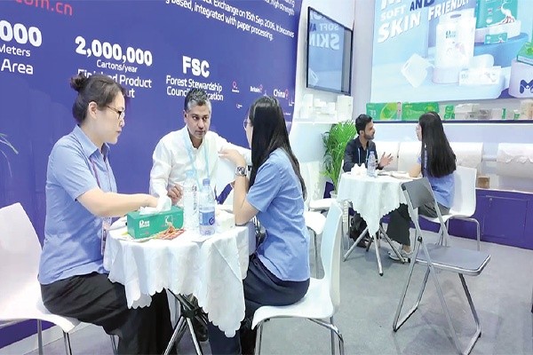 本次参展,公司秉持“坚守造纸本源,智拓全球市场”的发展理念,创新采用“以纸为基”的参展战略。展台设计巧妙融合环保理念与产品特性,重点展示的绿色环保生活用纸系列产品凭借卓越品质和创新设计,成为展会焦点,获得来自欧美、东南亚等多国客商的青睐。